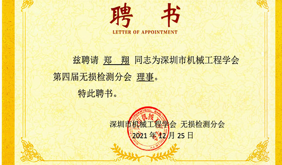 重磅!亞泰光電當選為深圳市機械工程學會無損檢測分會理事單位