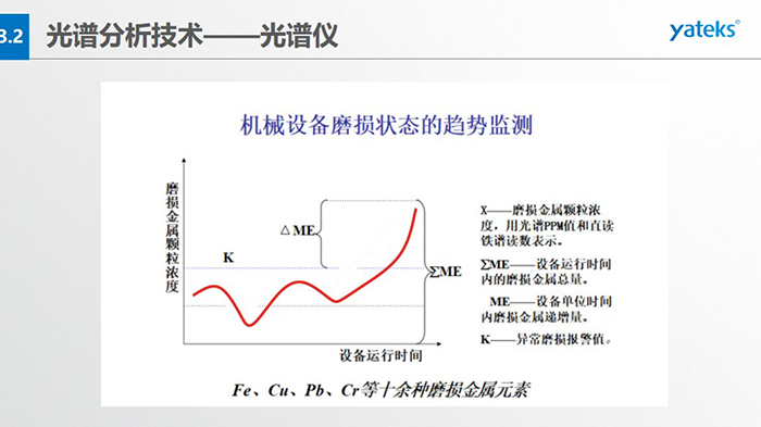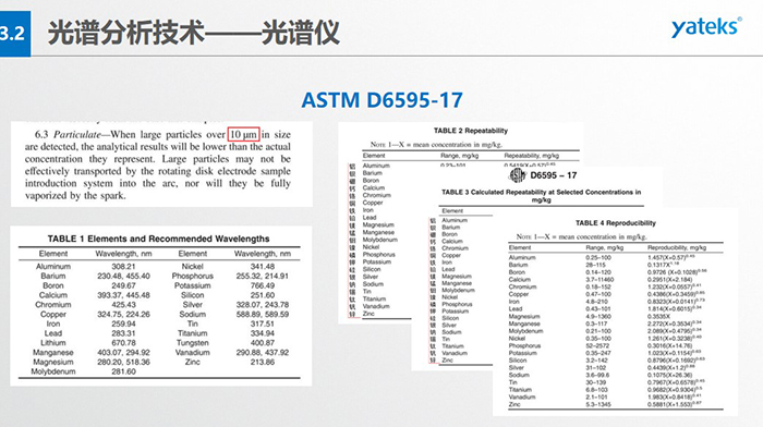 光譜儀的優(yōu)劣勢:優(yōu)勢:1)速度較快40秒;2)精度高PPM微量級;3)取樣少,可同時進行多元素   測定,適用范圍廣; 4)自動化程度高,有多種連鎖保護。弱勢:1)檢測的磨粒尺寸比較小,2微米效率最高,最大尺寸不超過10微米; 2)不能提供磨粒的形態(tài)、尺寸、顏色等直觀形象的信息,因此光靠光譜分析的結(jié)果直接對摩擦副的狀態(tài)作出判斷有很大的困難; 3) 價格較貴。