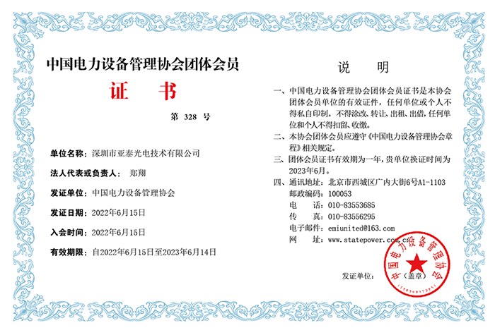 賀:深圳市亞泰光電成為中國電力設(shè)備管理協(xié)會會員單位